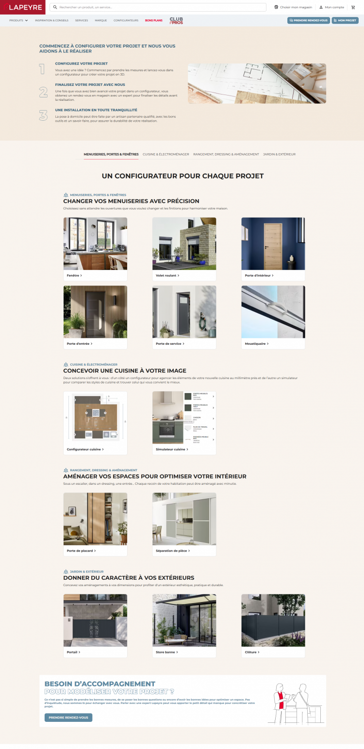 Refonte de la page Configurateurs – site e-commerce – Lapeyre.fr