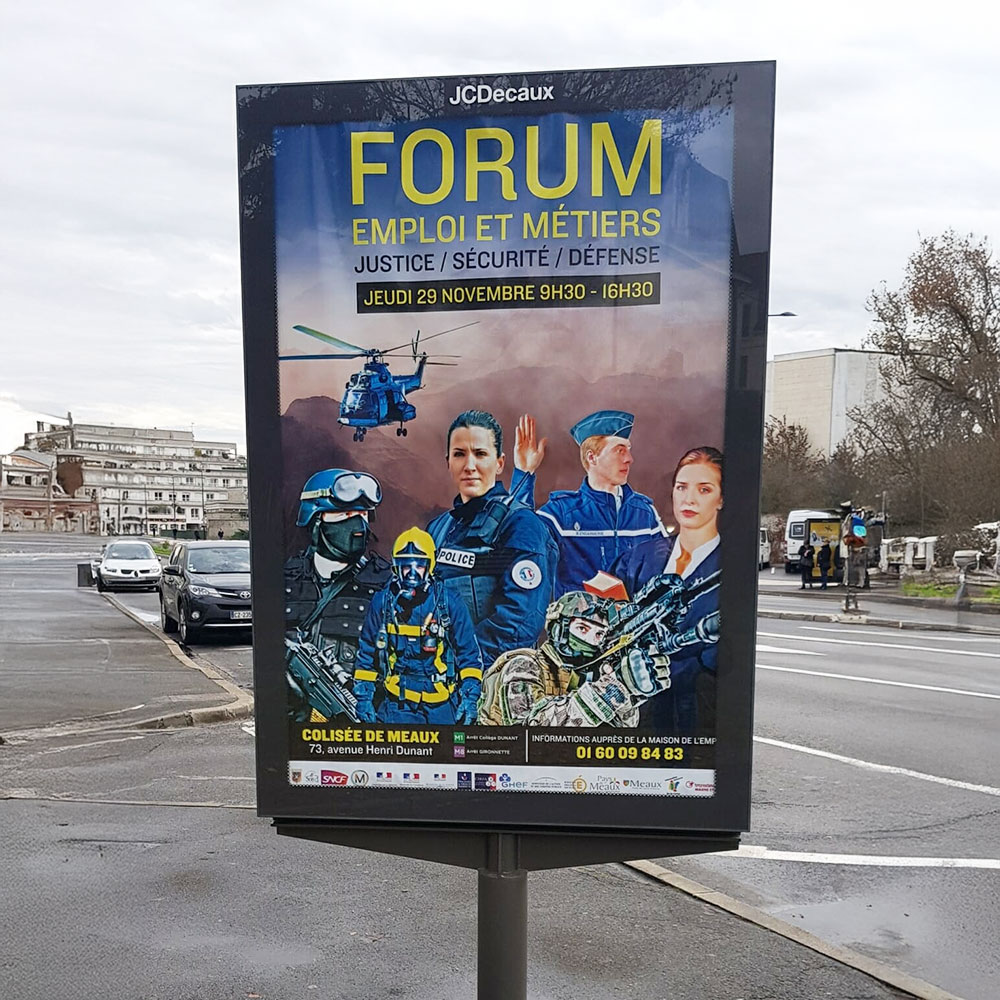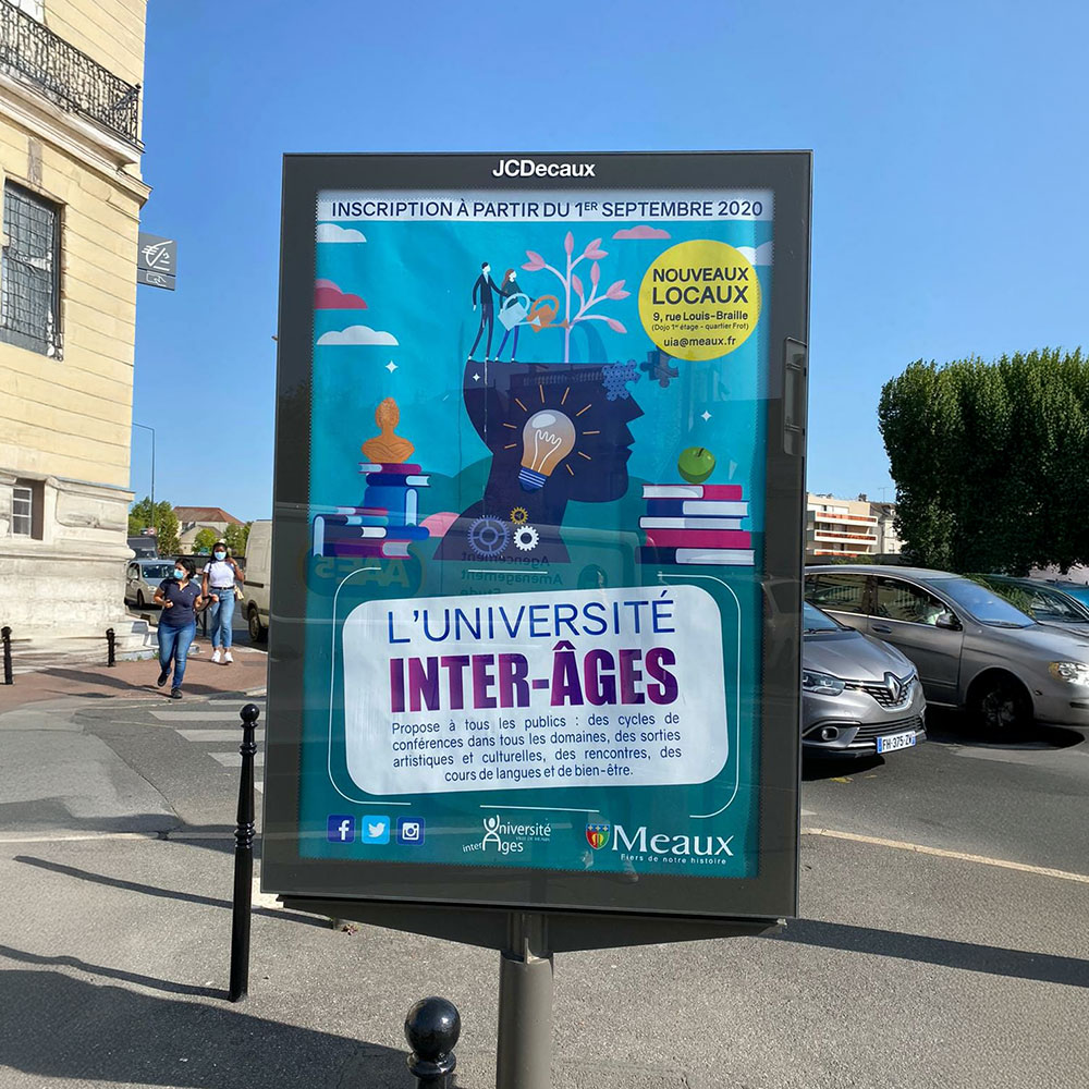 Dans le cadre de ma mission au sein de la mairie de Meaux, j’ai assuré la création graphique complète d’affiches destinées au mobilier urbain grand format JCDecaux. Ces supports étaient conçus pour promouvoir divers événements culturels, associatifs et institutionnels.